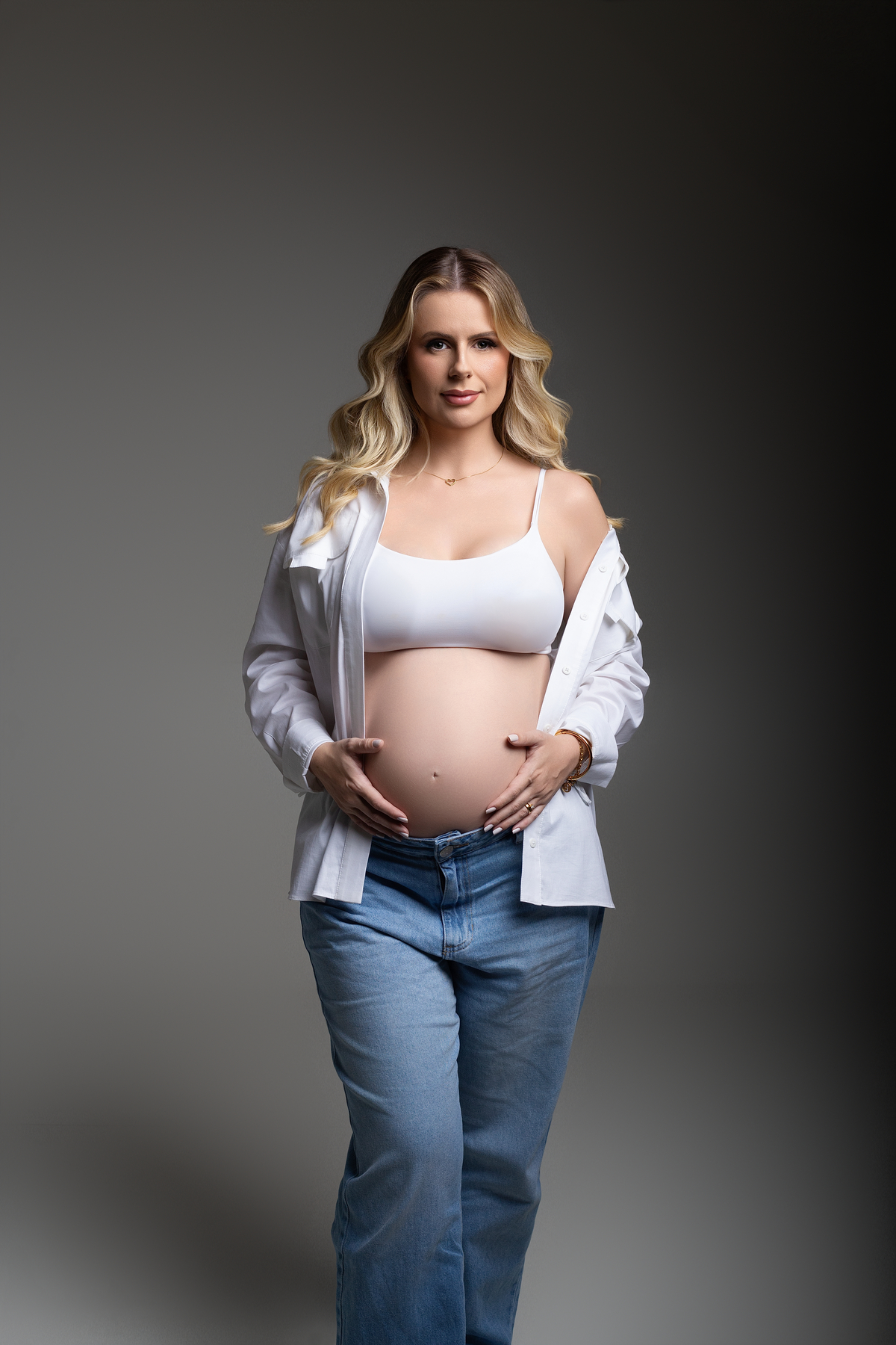 look camisa branca para fotografia, look com calca jeans fotografia gestante, camisa branca para gestante